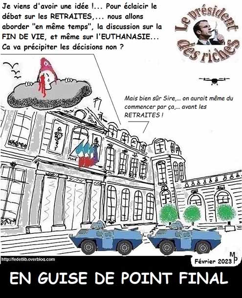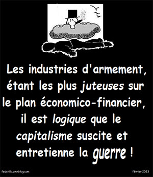 D’abord bien sûr comprendre que le combat est bien celui-ci et pas la défense de la petite Ukraine, éprise de paix et de démocratie attaquée par son méchant et grand voisin. Cette conscience est en train de lentement monter mais ce qui est encore très loin de nous c’est en quoi cette bataille pour leur survie des Russes a une relation quelconque avec la manière dont partout y compris en occident, chez les pays belligérants, se développent des mouvements sociaux comme celui des retraites qui ont le même adversaire.