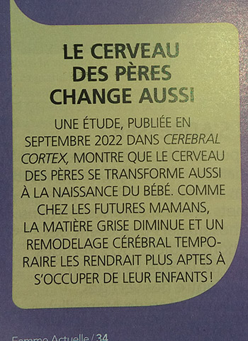 Extrait de la page 34 du numéro 2002 du Femme Actuelle du 6 au 12 février 2023. La page complète est dans l’article et concerne aussi les femmes.