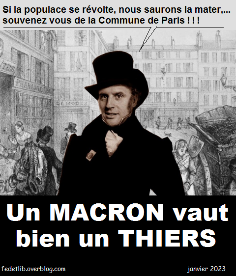 Après l’ ÉTONNANT SUCCÈS des ROBIN de BOIS de la CGT ÉNERGIE, agissant, pour la toute première fois, "de manière coordonnée,sur tout le territoire", sans brutalité contre les MILLIARDAIRES, mais pour le plus grand BONHEUR des plus PAUVRES, de NOUVELLES ÉTUDES d’ OPINION reflètent un REFUS CHAQUE JOUR PLUS FORT du VOL de nos RETRAITES (72% +6), même chez les plus âgés (59%, +13 en une semaine), et même un SOUTIEN GRANDISSANT aux MOUVEMENTS en cours (64%, +8). 57% des Français (+2) assurent qu’ils "comprendraient que les grévistes BLOQUENT le pays, car c’est le seul moyen pour que le gouvernement retire ou modifie sa réforme des retraites". - C’est donc un VASTE SOULÈVEMENT, RÉFLÉCHI, MAÎTRISÉ, de DÉSOBÉISSANCE CIVILE que nous devons envisager, dans un ESPRIT d’ INSUBORDINATION CIVILE et CIVIQUE, CONTRÔLÉE, allant bien au-delà des conceptions ARCHAÏQUES d’un " GRAND SOIR " INSURRECTIONNEL comme du MYTHE ANARCHO-SYNDICALISTE de la " GRÈVE GÉNÉRALE", tout aussi DÉPASSÉ.
