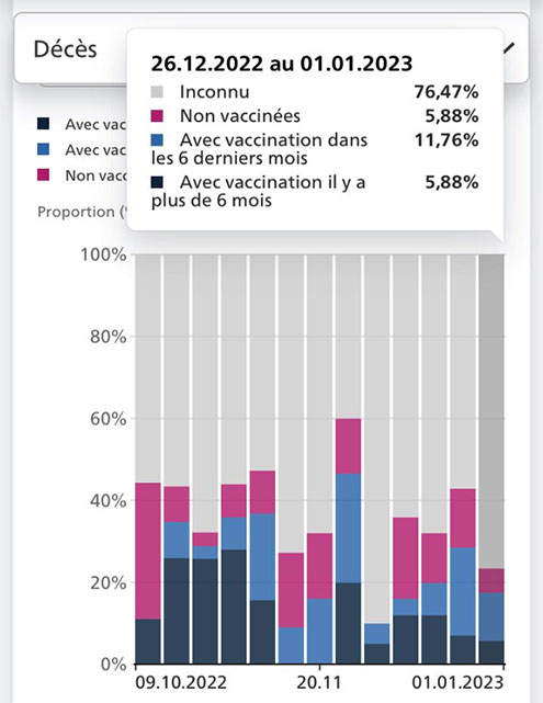 « Par conséquent, les catégories « partiellement vacciné » et « complètement vacciné sans/avec rappel » ne peuvent plus être affichées sur le tableau de bord. En conséquence, elles sont indiquées comme "inconnu". »