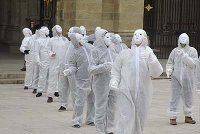 Macron peut rester en Afrique, les antifas veillent et ils décernent des médailles d’anti-sémitisme à celles et ceux qui, comme les Masques blancs, osent afficher publiquement des photos des victimes des injections pseudovaxx.