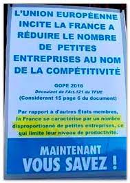 « Par rapport à d’autres États membres, l’économie française se caractérise par un nombre disproportionné de petites entreprises, ce qui limite leur niveau de productivité. Les initiatives prises récemment pour atténuer l’impact des critères de taille ne devraient pas avoir d’incidence significative sur la croissance des entreprises, compte tenu notamment de leur champ d’application limité et du caractère temporaire de certaines mesures. En conséquence, les effets de seuil continueront de freiner la croissance des entreprises françaises. »