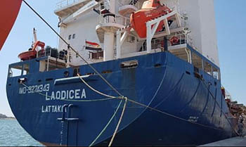 Le "Laodicea" bloqué au port de Tripoli au nord du Liban.