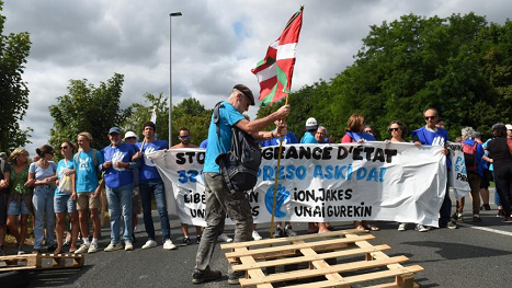 Autour d’un millier de manifestants ont tenté ce samedi de bloquer le Pays basque afin de demander la libération de Jakes Esnal et Ion Parot, dénonçant une « vengeance d’État ».