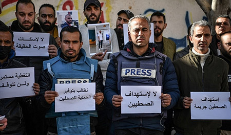 Le bureau déclare dans son communiqué : "Le nombre de journalistes martyrs s’est élevé à 130 hommes et femmes journalistes depuis le début de la guerre génocidaire dans la bande de Gaza, après le martyre de quatre journalistes lors de raids israéliens distincts dans toute la bande".