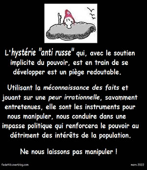 Ce matin, rebelote. « Poutine recourt à la erreur nucléaire ! », brament les coryphées du nouvel ordre impérialiste. Pourtant, là encore, l’objectif était de paralyser une centrale et non de la détruire au risque de provoquer un nouveau Tchernobyl. Et l’on en a pas fini avec ce déferlement d’inepties !